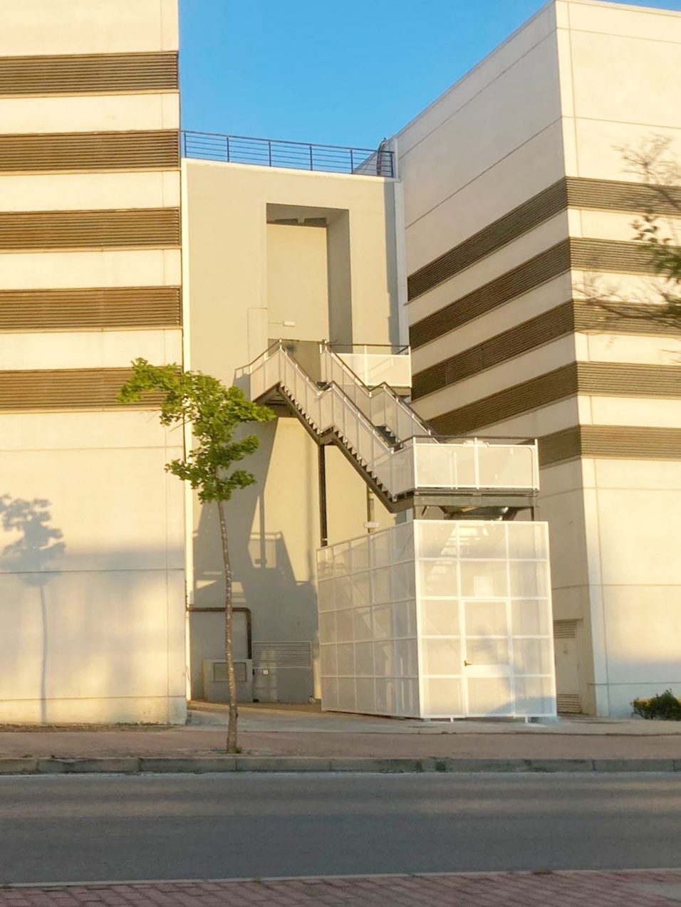Fabricación y colocación de dos escaleras de emergencia, para terraza y pasillos en centro comercial Areasur.