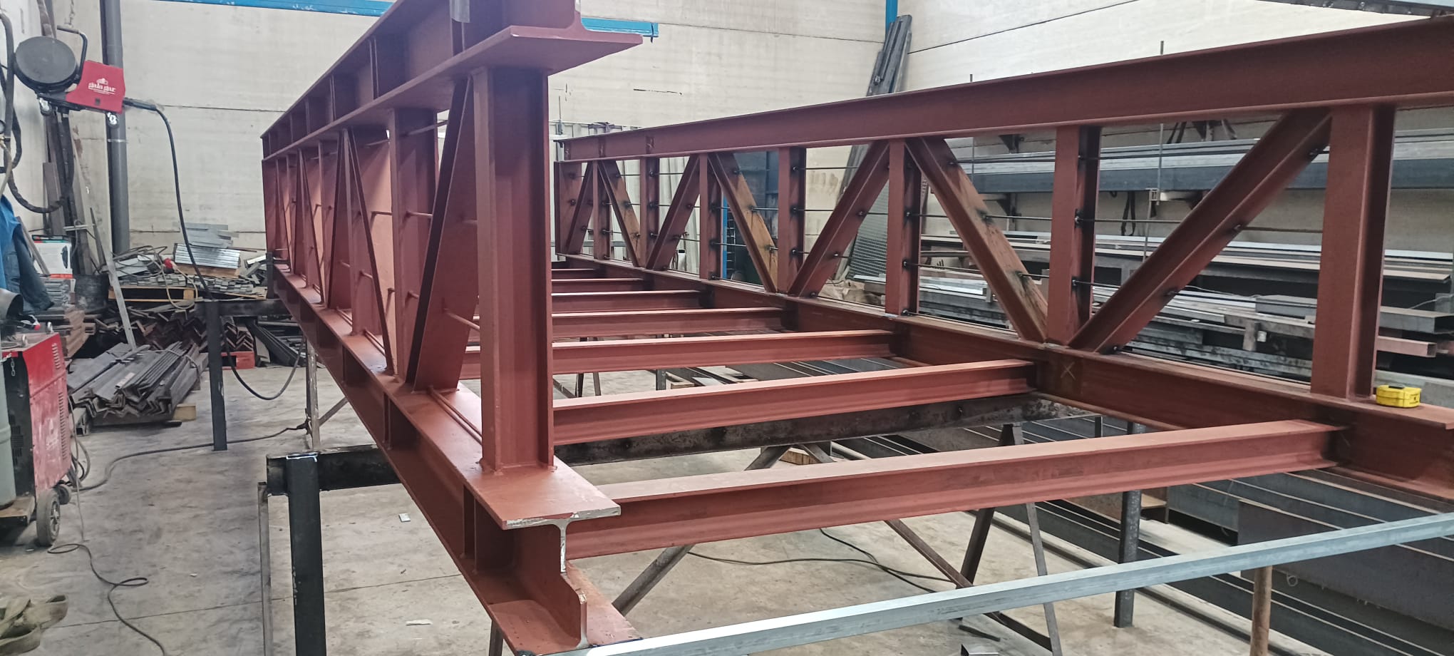 Estructura metálica para escalera de aproximadamente 10 m de largo, situada sobre cubierta del hotel de acero estructural.